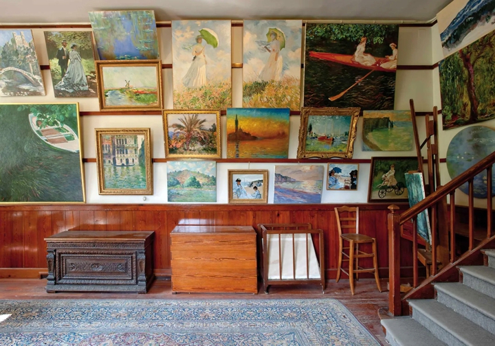 Конечно, ни одного оригинала сейчас на этих стенах нет. Картины перевезли в Париж, в музей Орсе и в музей Мармоттан-Моне, чтобы не ставить перед каждой солдата с ружьем. Но это точные копии, причем сделанные по специальному разрешению Минкультуры один в один (обычно они должны изготавливаться с изменением размера). В их подборе виден и вкус хозяина, и его спокойное отношение к своим и чужим шедеврам, которые сейчас ни один декоратор не осмелился бы повесить так небрежно и плотно – ковром на сотни миллионов долларов.