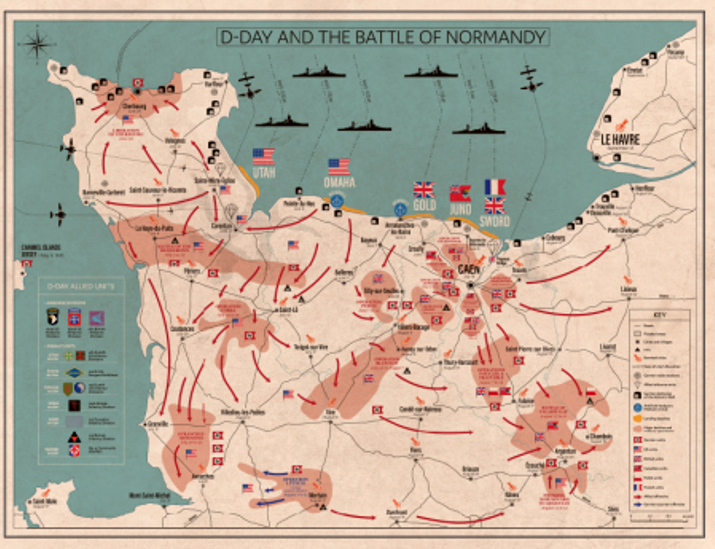 Нормандская десантная операция по количеству высаженных войск, военно-морских сил и военно-воздушных сил, а также транспортных средств, принимавших в ней участие, стала самой масштабной операцией во Второй мировой войне на западном фронте и в целом в мировой истории войн. Она стала поворотным моментом, часто называемым «началом конца» Второй мировой войны.