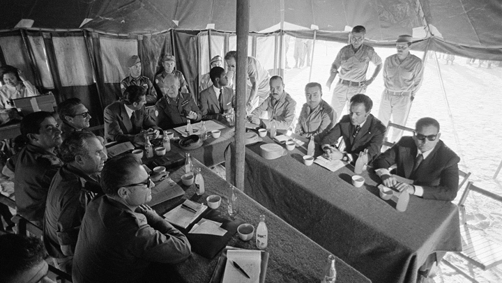 Подписывать соглашение прилетел начальник военной разведки генерал Аарон Ярив. Он по-молодому выпрыгнул из вертолета, поглядел на вытянувшихся по стойке “смирно” почищенных египтян, усмехнулся и прошел в шатер. В шатре он недолго пробыл – обсуждать было нечего, а подготовленные документы лежали на столе.